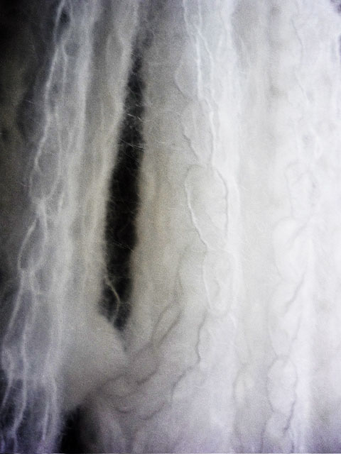 The exhibition features nine pieces showing a variety of techniques and materials. What is good is that it really has been created for the space, with Baroque, a netting and wire piece hung across a corner like a drape, and Immerse, which is made of mohair, also filling a strange narrow shape like a curtain.